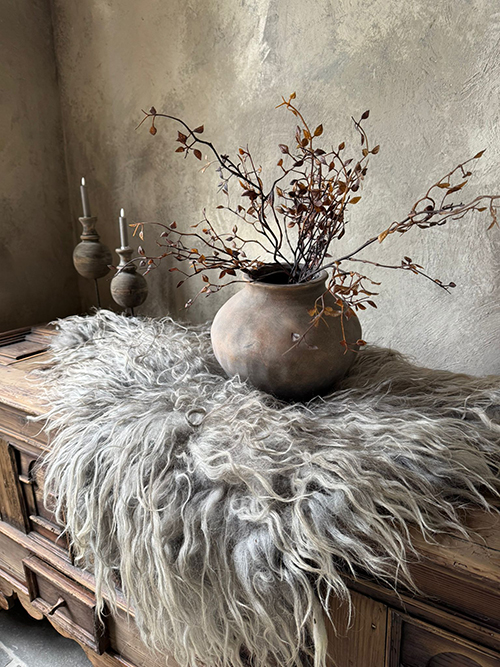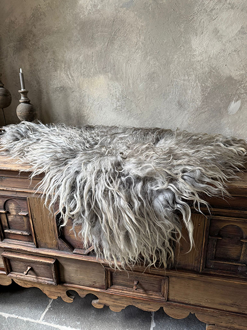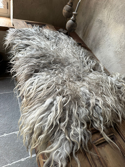 Deze prachtige, volle blauwvos vacht van het Drents Heideschaap is met de grootste zorg handgevilt. De prachtige grijsblauwe tint in de schitterende lange lokken geeft warmte aan het interieur, waar u deze ook legt. Deze vacht kan zowel voor decoratie als voor tapijtje gebruikt worden. Deze vacht is een geschoren vacht en heeft dus geen huid aan de achterzijde maar een rug van vilt. Bij juist gebruik en onderhoud gaan deze vachten heel lang mee. De vacht kan indien nodig gewassen. We vertellen u bij aankoop graag hoe u dat doet.