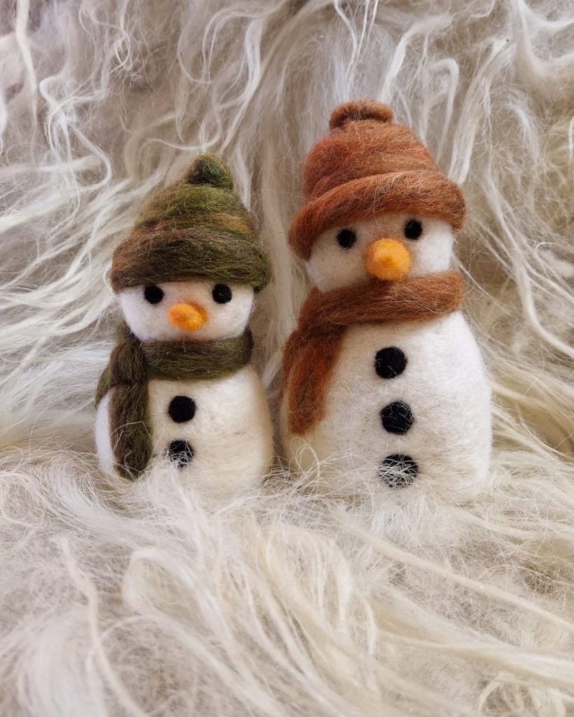 U maakt in een middagje tijd in ons knusse atelier een prachtige sneeuwpop met een zelfgekozen kleur muts en sjaal dmv naaldvilten.